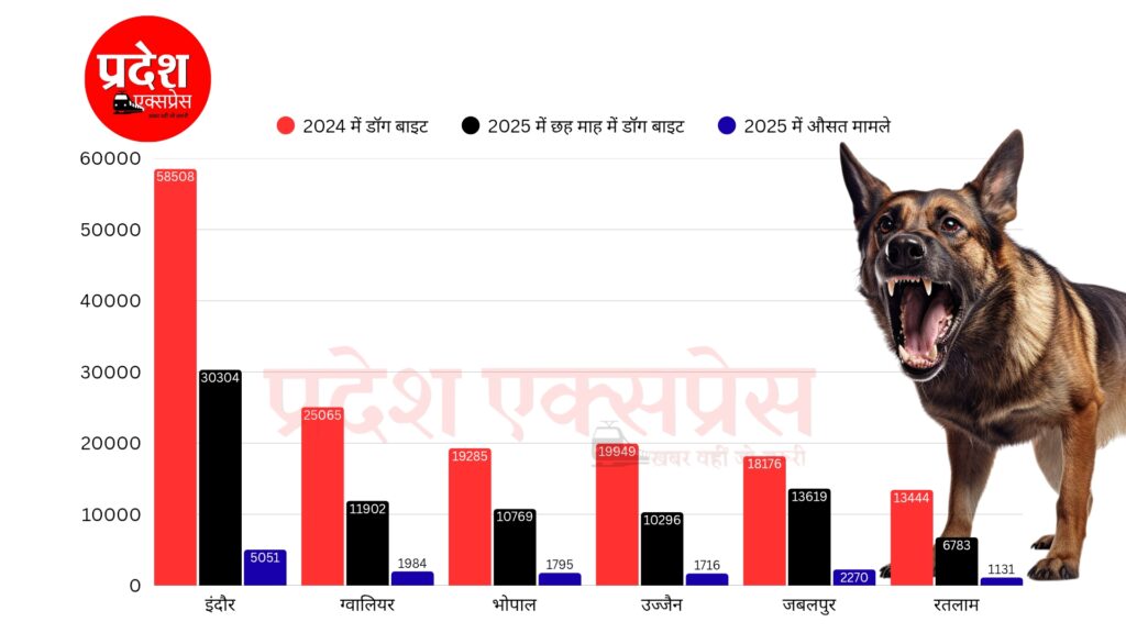 स्वच्छता के मामले में लगातार देश में नंबर वन रहने वाला इंदौर अब एक और आंकड़े में शीर्ष पर आ गया है, लेकिन इस बार मामला गर्व का नहीं बल्कि चिंता का है। नेशनल हेल्थ मिशन (NHM) द्वारा जारी ताज़ा रिपोर्ट में इंदौर डॉग बाइट (कुत्तों के काटने) के मामलों में प्रदेश में शीर्ष स्थान पर दर्ज हुआ है। वहीं, मध्य प्रदेश की राजधानी भोपाल सबसे सुरक्षित शहर के रूप में उभरा है, जहां इस मामले में सबसे कम घटनाएं दर्ज हुई हैं।
