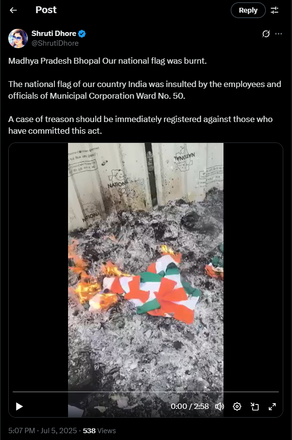 भोपाल में राष्ट्रीय ध्वज का अपमान, वार्ड क्रमांक 50 के नगर निगम कर्मचारियों पर गंभीर आरोप
