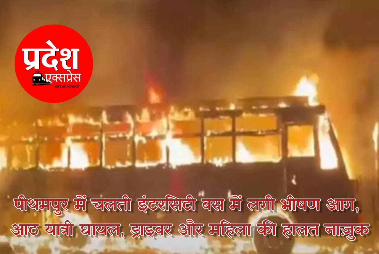 चलती इंटरसिटी बस में भीषण आग, आठ घायल, ड्राइवर और महिला की हालत नाज़ुक: