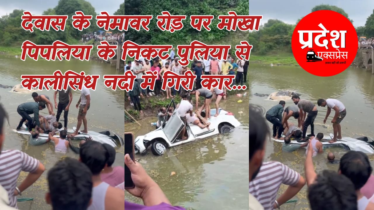देवास: नेमावर रोड पर पुलिया से कालीसिंध नदी में गिरी कार, दो की मौत, दो को रेस्क्यू कर बचाया